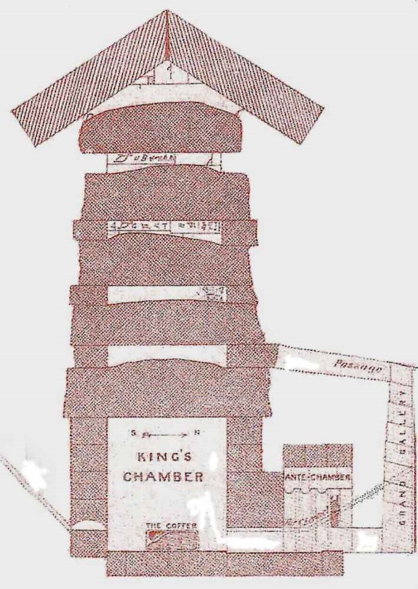Conventional theory is that this extraordinary construction was to spread the enormous weight of the pyramid above and from earthquakes. Neither of these is correct otherwise the Queens Chamber below and under greater weight above, would have a similar construction. The limestone gable spreads the load as a diagonal vector away from the chambers below.